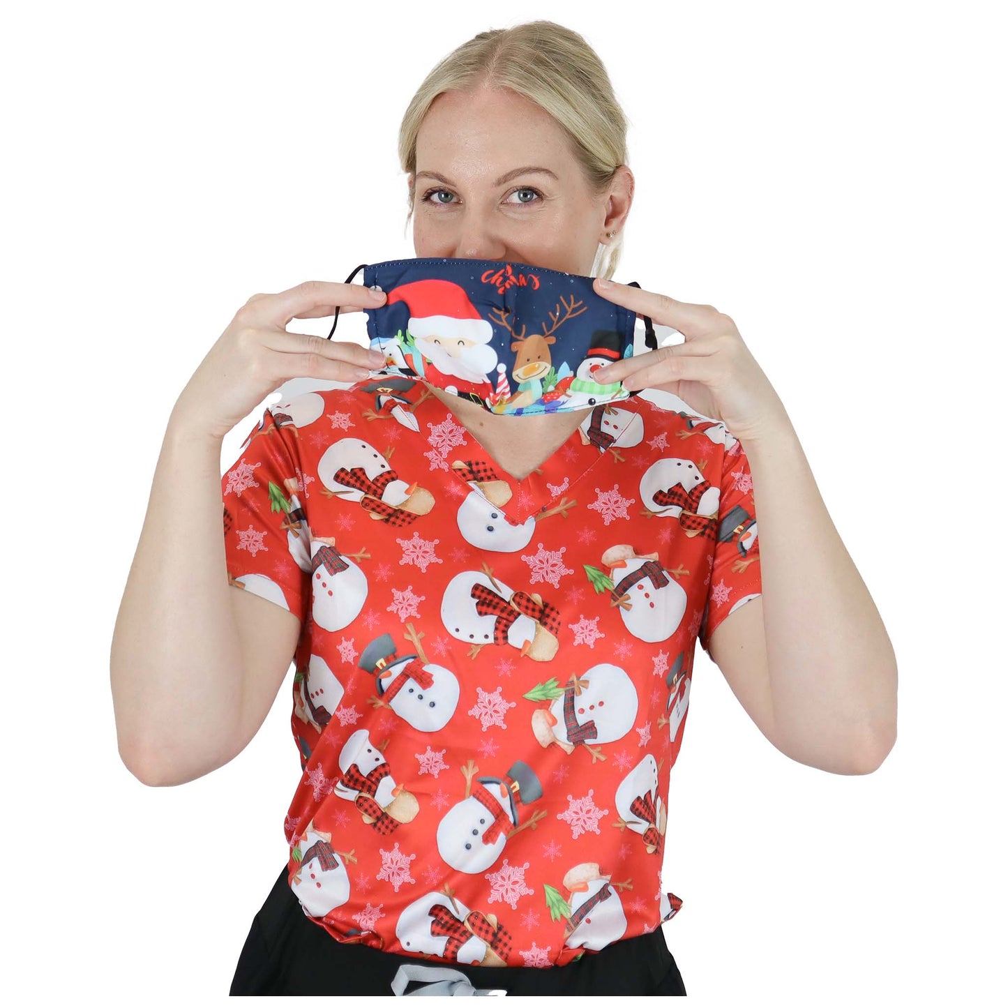 The Freedom Flex fabric is wrinkle-resistant and quick-drying, ensuring your scrubs look professional throughout your shift and are ready to wear after a quick wash. Plus, the fabric is soft to the touch, preventing skin irritation, which is critical for healthcare workers who may spend long hours on their feet. The blend is also fade-resistant, meaning the vibrant colors and stylish prints, such as our popular Christmas scrubs, remain looking fresh wear after wear.