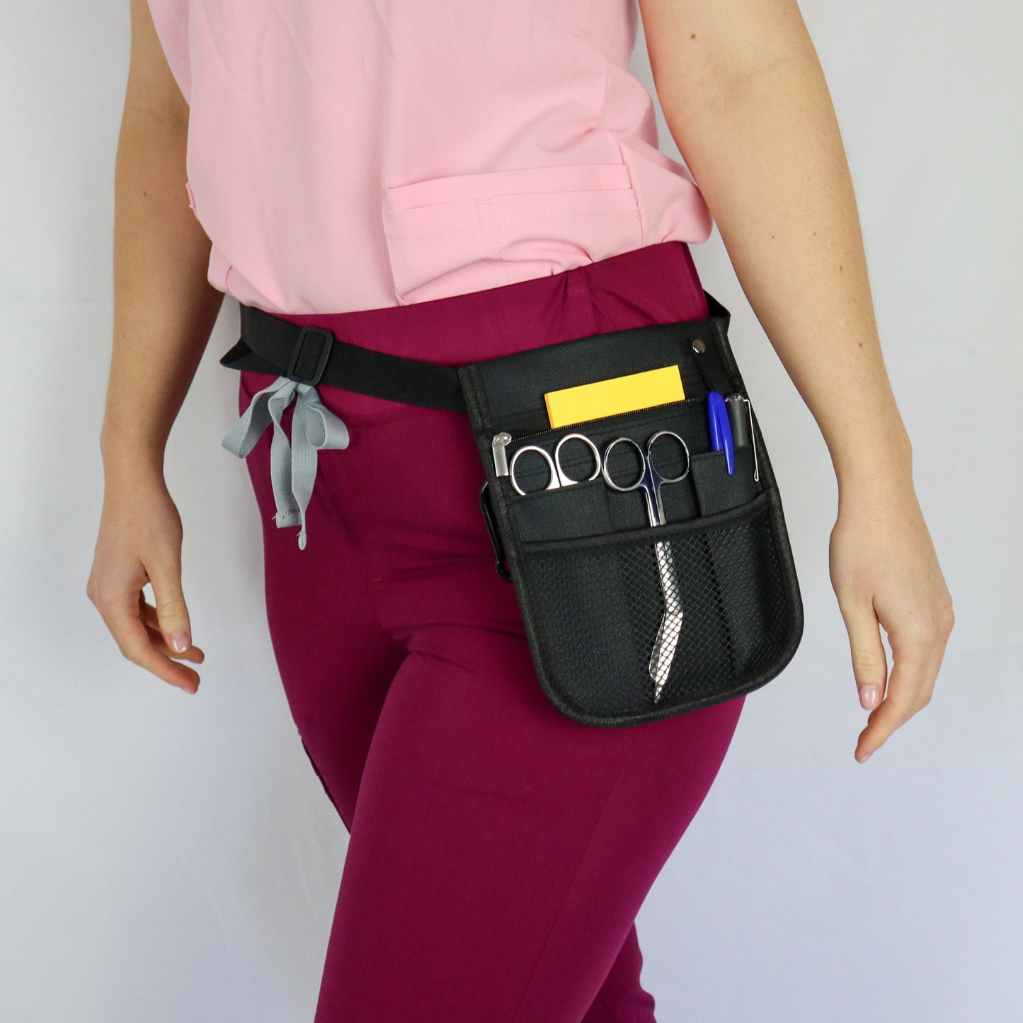 Not enough pocket space? Need all of your daily equipment supplies in an easy to reach place. Look no further than our custom designed Nurse Pouch.Room galore for your pens, thermometer, calculator, notebooks, keys and everything else you need on hand in 1 convenient pouch.